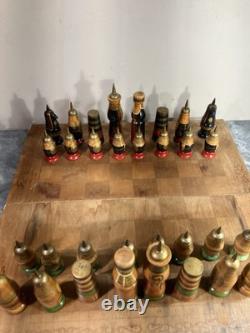 Wooden Chess Set Soviet USSR Russian Complete Set Hand Carved Painted Ethnic Art